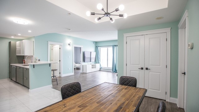 In this 96-square-metre apartment unit are two bedrooms and two bathrooms. Throughout most of the unit are new vinyl floors, and the kitchen has been upgraded to include new tile flooring, cabinetry and quartz countertops. The apartment overlooks Nova Scotia’s Long Lake Provincial Park and is a short drive away from downtown Halifax.