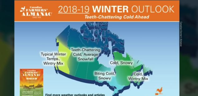 While the Almanac predicted colder temperatures in Quebec, biting cold in parts of Ontario, the long-range guide is calling for "teeth-chattering cold" across the Prairies.