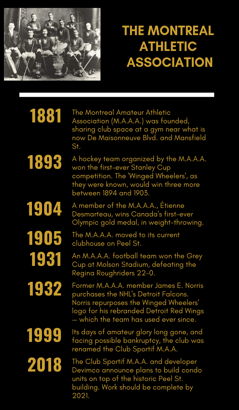 The MAA won four Stanley Cups, was Grey Cup champion in 1931 and was the home club of Canada's first Olympic gold medallist, Étienne Desmarteau in 1904.