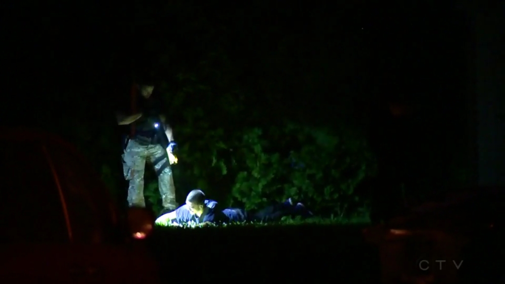 A police chase in Longueuil ended with a man in a bush surrounded by police dogs and officers waiting to arrest him.