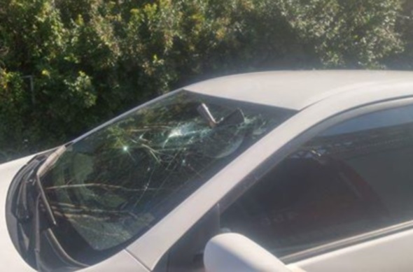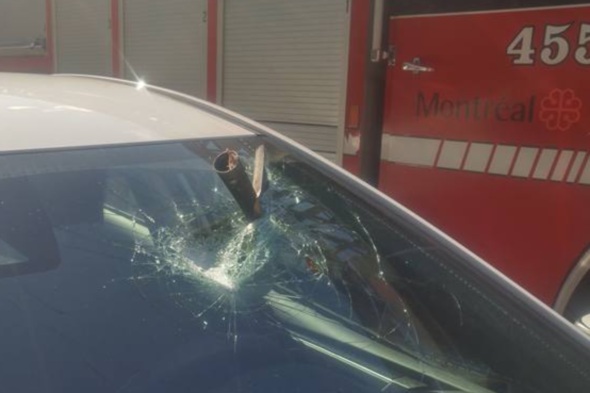 "I looked up and here was this turf-cutting spade sticking through her windshield, literally aimed at her head," said Bujold, who contacted CJAD 800 News through yourstory@cjad.com.
