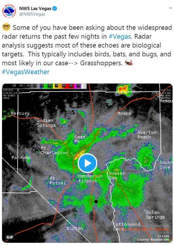 A migration of mild-mannered grasshoppers sweeping through the Las Vegas area is being attributed to wet weather several months ago.