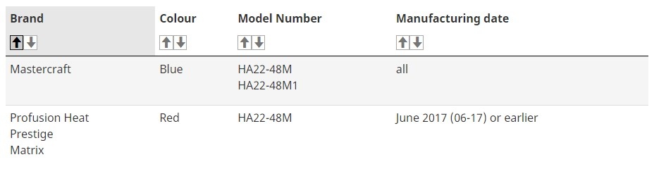 "Consumers should immediately stop using the recalled product and return it to the place of purchase for store credit or to obtain a replacement unit," the health agency said in the recall notice. "Proof of purchase is not required."