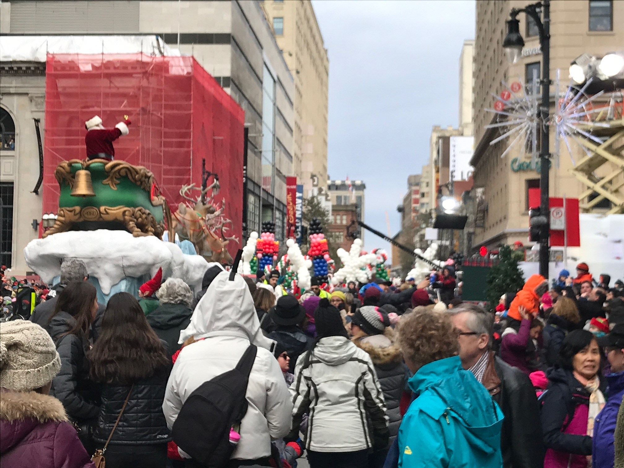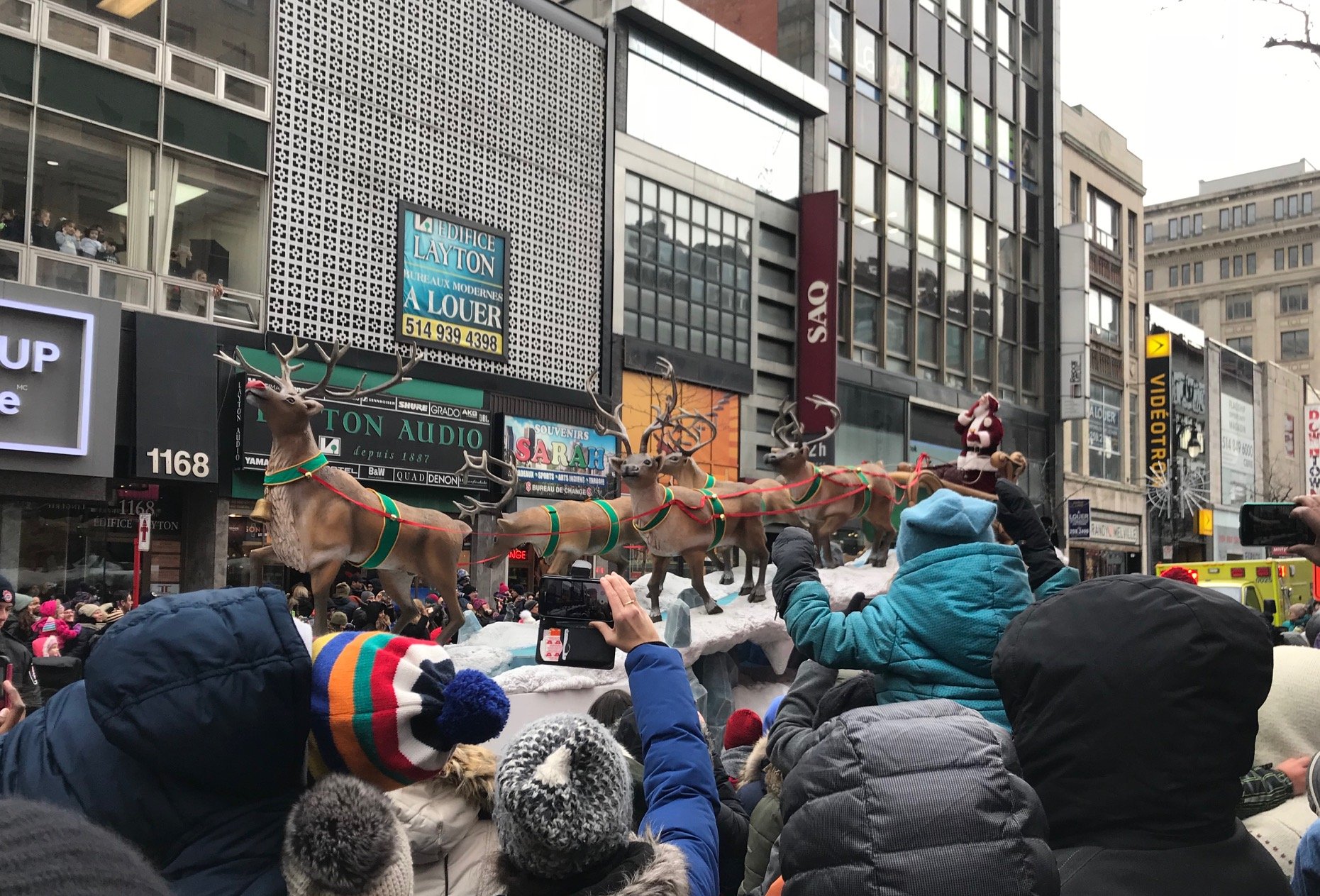 Festive floats and marching bands playing holiday tunes travelled down Sainte-Catherine St. starting from Fort St. over to Saint-Urbain St.