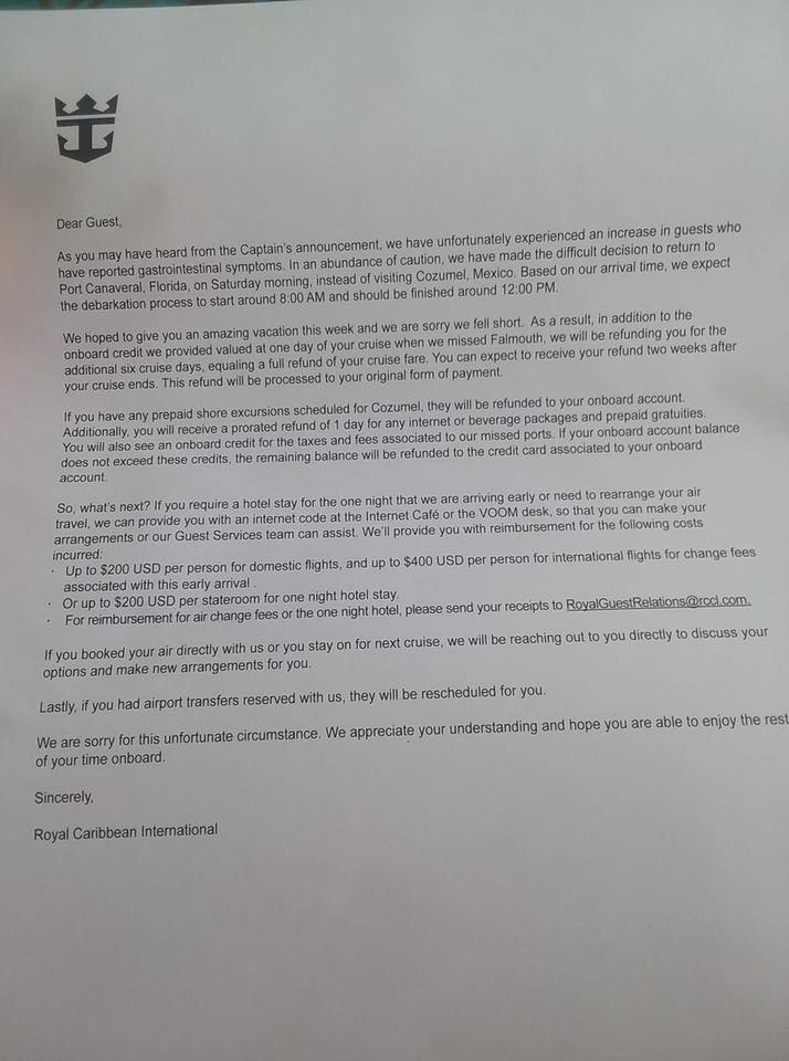 Royal Caribbean's Oasis of the Seas is returning to a Florida port a day early and giving passengers full refunds of their fare after 277 guests and crew members were hit with an outbreak of Norovirus as it sailed to Jamaica.